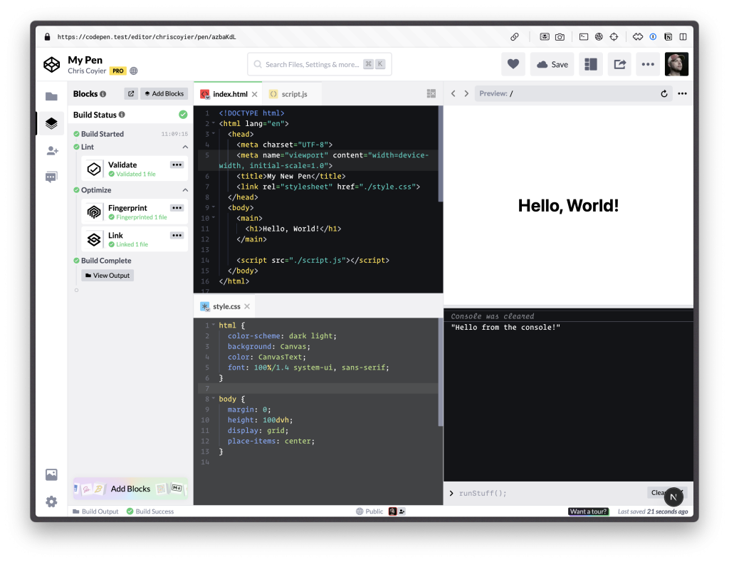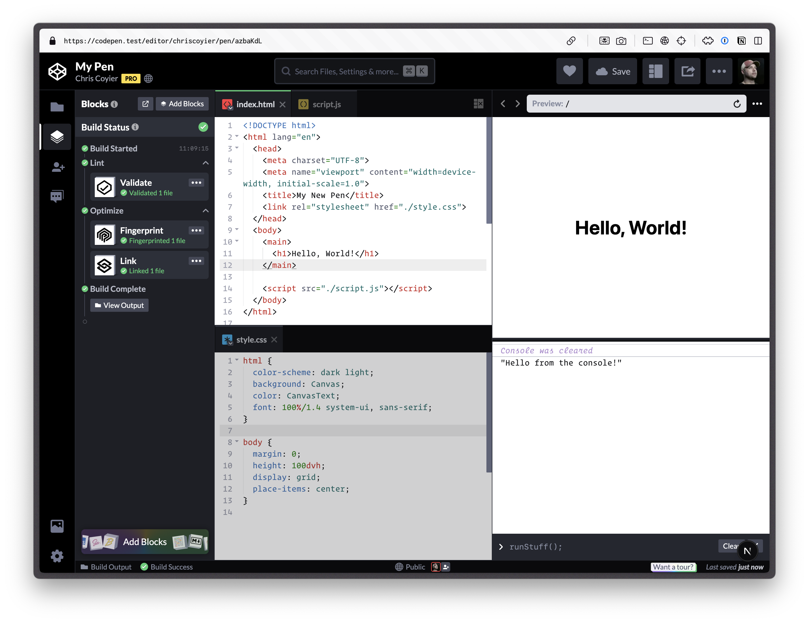 https://codepen.io/editor/you/pen/slug?console=true&file=%2Findex.html&minimal=true&orientation=left&panel=files&show=split